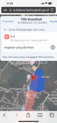 For Sale: Land on Uluwatu Main Road, Jimbaran, Near Sidewalk Mall Specifications: Land area: 40,100 m2 Front width: 276 m West-facing 10m asphalt road Certificate: SHM (Freehold Title) Zone: K2 for Regional Urban Scale Trade and Services Price: 8 million/m2