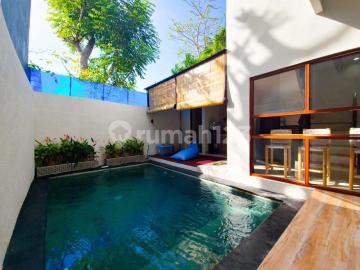 Modern villa located in Jimbaran with a one-gate system. Land Area: 130 m2 Building Area: 85 m2 Orientation: East Price: IDR 2.6 Billion FURNISHED Details: 3 bedrooms and bathrooms Swimming pool 5x3m Gazebo Carport Complete kitchen Closed living and dining area Free Hold Title Certificate PBG 2024 Hot location 2 minutes to Jimbaran Sidewalk 5 minutes to Garuda Wisnu Kencana 5 minutes to Samasta Village Jimbaran 7 minutes to Jimbaran Beach 25 minutes to Ngurah Rai Airport