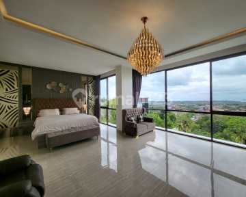 FOR SALE SPECTACULAR LUXURY VILLA WITH UNBLOCKED OCEAN, AIRPORT, TOLL, AND MOUNTAIN VIEWS IN JIMBARAN. 4-Story Building Land Area 800 M2 Building Area 800 M2 Views: Airport, Toll Road, Ocean, and Mountain 4 Bedrooms 5 Bathrooms 2 Living Rooms Home Theater (Cinema) Gym (Fitness Room) Office Room 2 Storage Rooms 2-Car Garage 2-Car Carport Kitchen Set Fully Furnished Large Swimming Pool 13x6 meters Whirlpool / Jacuzzi Spacious Garden 13,200W Electricity PDAM Water Supply Full-View Rooftop 2 Maid’s Rooms 1 Maid’s Bathroom SHM / IMB (Certificate) Prime Location Dual Access Roads 6-Meter Road Access Located in a prestigious, comfortable, and peaceful villa neighborhood 5 minutes to Sidewalk 7 minutes to Samasta Village 5 minutes to GWK 15 minutes to Ngurah Rai International Airport Price: 28.8 Billion IDR