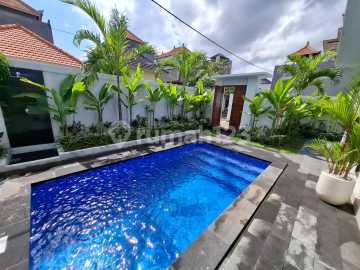 BP-205/2025 For rent villa on Jl. Raya Dawas, Merta Ayu, Tibubeneng, North Kuta, Badung Specifications: Land area: 200 m² Building area: 180 m² Orientation: North Number of floors: 1 2 bedrooms, 2 bathrooms, carport for 1 car, living room, family room, swimming pool, garden, terrace, storage room, workspace, kitchen, 2 AC units + fan, 2 TV units, water heater, 4400 Watt electricity, well water Price: IDR 250 million/year (minimum lease 5 years)