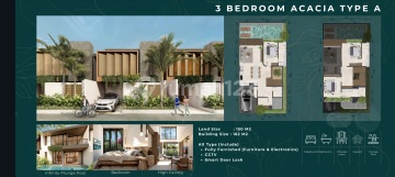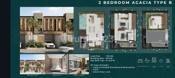 KANA HILLS @ BALI Unit Types: - Acacia A Type 150/162: 3 bedrooms, 3 bathrooms, 1 powder room, 1 carport - Acacia B Type 134/165: 2 bedrooms, 2 bathrooms, 1 powder room, 1 carport - Balsa Type 192/180: 3 bedrooms, 3 bathrooms, 1 powder room, 1 carport Building Specifications: ● Foundation: Stone Reinforced Concrete ● Walls: Lightweight brick, Dulux Catylac Paint (Interior), Mosaic Tiles (Bathroom), Granite Tile (Bathroom) ● Floor: Homogeneous tile 60x60 ● Floor to floor height: 3.6 m. Floor to ceiling height: 3 m ● Carport (Batu Pilah Jember) ● Window Frames: Aluminium XINGFA or equivalent ● Roof: Bitumen, waterproof ● Sanitary: Grohe or equivalent ● Electrical installation: 7700 watts - 10,200 watts ● Water: PDAM/Water heater, Water tank ● Swimming pool: Sukabumi Greenstone 10x10 cm, Pool decking WPC (Kayu Asri) Layouts: Layout for 2 BR Type B: ● Swimming pool size 5.5 x 2.65 m² ● Master bedroom 5.55 x 4.125 m² ● Rooftop 6 x 6.5 m² Layout for 3 BR Type A: ● Swimming pool size 8 x 3.275 m² ● Master bedroom 5.425 x 4.5 m² Layout for 3 BR Type B: ● Swimming pool size 9.6 m x 2.8 m² ● Master bedroom 7.35 x 4.65 m² WHATSAPP: 0813186xxxx
