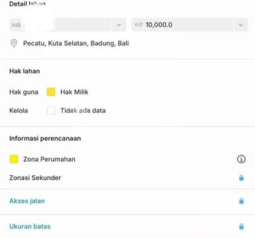 For Sale Land Near Nirmala Supermarket Pecatu on Belimbing Sari Street, Pecatu, South Kuta, Badung - Bali Land Area: 10,000m2/1 Hectare SHM Ownership Certificate Yellow Zone ITR Designation for Housing Front Width: 71 Meters 5 Meter Hotmix Road Access Flat Contour PDAM Water Network Available, PLN Electricity Network Available Approx. 200 Meters from Uluwatu Main Road Approx. 200 Meters from Nirmala Uluwatu Villa & Hotel Area Land Price: 580 Million/100m²/Are Negotiable
