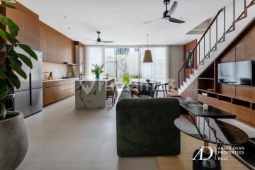 Brand-New | Fully Completed | Private Pool | Turnkey-Ready Located in the quiet and highly desirable residential area of Umalas, strategically set between the vibrant districts of Canggu and Seminyak, this boutique complex comprises just eight two-bedroom villas designed for modern tropical living. With only two units still available. Each villa is offered on a 30-year leasehold with a guaranteed 25-year extension, delivering both long-term security and strong investment potential. Villa 6 is set on 118 square meters of land with 142 square meters of interior space, and Villa 7 sits on a slightly larger 120-square-meter plot with the same 142-square-meter interior layout and a wider pool deck area. Each unit offers two ensuite bedrooms, an open-plan living and dining area, and a sleek modern kitchen with built-in cabinetry and a bar counter. Floor-to-ceiling glass doors open up to a private plunge pool and shaded terrace. Each home comes with a fully equipped kitchen (sink, stove, cabinets, and bar counter), built-in wardrobes, desk units, wall shelving, PLN electricity connection, and certified utilities (PPG & SLF). Year Built: 2025 Villa 6 - IDR 3,984,000,000 Villa 7 - IDR 4,050,000,000 (slightly higher due to its larger land size and outdoor space).