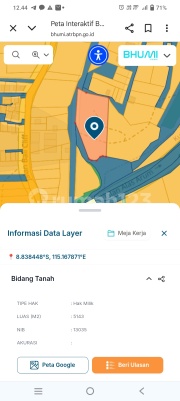 Land for sale Area 1 hectare 9.9 ares (109.9 ares) 10,999 m² Consists of 2 land certificates 5,143 m² 5,856 m² Price 550 million per are Near Pura Batu Pageh Ungasan Road