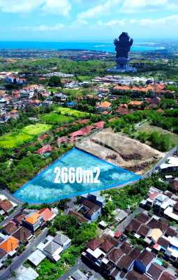 Exclusive Direct Buyer Property For Sale: Highly Strategic Land with Views of GWK and the Sea on Jl Merak Ungasan, The location is extremely strategic and rapidly developing, highly sought after, perfect for building a villa complex or for investment, Just 10 to 15 minutes to Melasti Beach, Pandawa, Balangan, Dreamland Beach, and others, Close to public facilities: - International schools - Supermarkets - Markets - Cafes - Clinics, etc. Land area: 2660 m2 (26.6 ares) Dimensions: 68 x 64 meters Leveled land with high contour Orientation facing East and North Freehold certificate Zoned for residential use Access via 5-meter wide asphalt road Price: 450 million per are FAST response, please call or WhatsApp