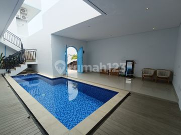 2.5 Floor Modern Villa for sale on Jalan Tukad Selatan, Ungasan. Well Maintained Building, Good Access. Close to Public Facilities, GWK Cultural Park, Melasti Beach and Uluwatu Area. Details: Land area 165 m2 Building area 265 m2 2.5 Floors Bedroom 4 Bathroom 4 7,700W electricity Carport for 1 car PAM water Water heater Swimming pool Semi-furnished West facing orientation Price 3.5 billion (DS)