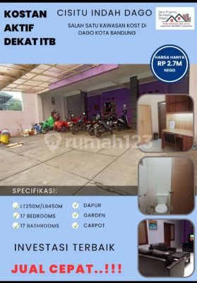 Turun harga Dijual kos kosan aktif murah di Cisitu Dago dekat ITB Bandung Luas tanah: 250 m² Luas bangunan: 400 m² Kmr tdr: 17+1 Kmr mandi: 17+1 2,5 lantai Ada rooftoop, gazebo Water heater Full furnish SHM Listrik 3500 watt Carport cukup luas untuk parkir mobil dan motor Harga 4,2M turun 3,5 M turun di 3,3 M turun di 3 M sekarang di 2,7 M nego tipiiiis an