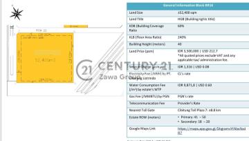 INDUSTRIAL LAND FOR SALE IN MM2100 - BEKASI Location: Bekasi - West Java Specifications: • Within MM2100 Industrial Estate • Land Area 52,400 m² || 5.2 Ha • Dimensions W.214 m x L.244 m • SHGB (Right to Build and Use Certificate) • Rectangular Shape - Industrial Permit - FAR 60% || BCR 240% - Building Height 40 meters - 40-Foot Container Access - Road Row 22 meters - *BUYER ONLY* SALE PRICE 3.5 Million / m² - Excl. VAT - NEGOTIABLE Property Brokerage and Sales Services Across Indonesia MORE INFO Sri HH | KSwaRul | 569 C21 Zawa Group