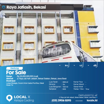 Strategic Location, Suitable for Bus Depot Business, Near Toll Access For Sale Gedung Raya Jati Asih Jatiasih, South Bekasi, Bekasi, West Java Price: Rp 55,000,000,000 (For Sale) Property Description: Strategic Location, Suitable for Bus Depot Business, Near Toll Access Land Area: 3500 m2 Dimensions: 12x Building Area: 1542 m2 Certificate: SHM Bedrooms: - Bathrooms: - Car Garage: - Facing / View: East LOCAL X Kelapa Gading ******** 021 2906 8xxx Whatsapp/Call. Mariana - 0816 4830 xxx P3KPG-0000xxxx-MT-J