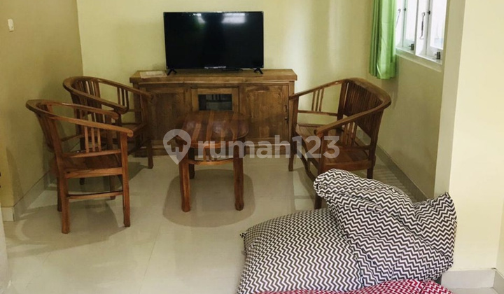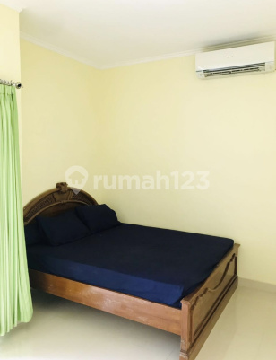 Land area 125 m2 Building area 90 m2 2 floors 2 bedrooms (on the 2nd floor) 2 bathrooms Electricity 2300 PDAM water supply Kitchen Living room Balcony Car garage Storage room Laundry area 1 refrigerator unit 1 stove unit 1 melon gas cylinder 1 set of guest table 1 set of dining table 2 bed units (160x200) 3 air conditioning units 1 electric water heater unit parallel for 2 bathrooms IRN 0.4.6/2