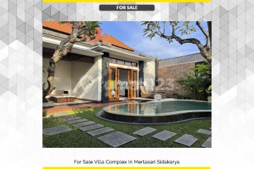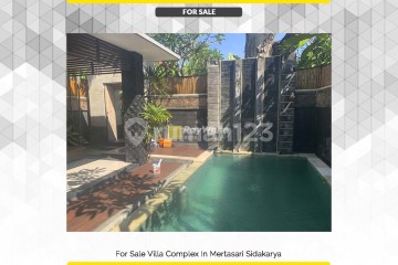 For Sale Villa Complex In Mertasari Sidakarya -BR By main road of Mertasari Sidakarya Prime location Very good for investment 1 minute away from sanur 3 minutes to central denpasar 1 minute to bypass ngurah rai Details: Land size 1493 m2 Building size +- 900 m2 10 bedrooms 11 bathrooms 1 floors Consist of 8 smaller villas 2 bedrooms 2 unit 1 bedroom 6 unit Swimming pool Kitchen set Fully furnished Reception office Office Ground & town water Electricity 49500 watt South facing Spacious carport Up to 10 cars SHM / Freehold IMB/ building permit Asking price : IDR 35 Billion Negotiable
