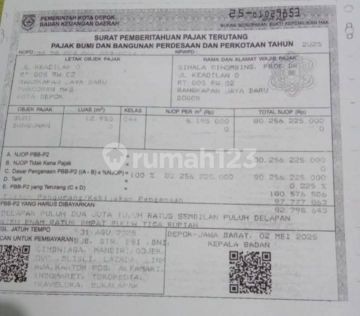 Land for sale in Pancoran Mas, Depok NJOP IDR 6.2 million, Selling below NJOP at IDR 4 million per meter Strategic Location Close to hospital Only 7 minutes to Sawangan Toll Road Strategically located in front of the main road Title deed: SHM (Sertifikat Hak Milik) If seriously interested, WhatsApp 08151001xxxx