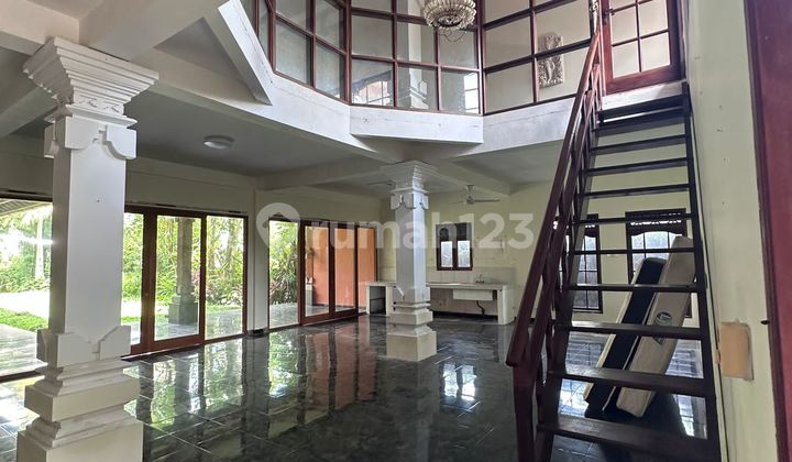 LAND FOR LEASE LARGE VILLA BONUS SRI WEDARI CENTRAL UBUD ROAD AREA 12 ARE BUILDING 600 M2 CERTIFICATE (SHM), PROPERTY TAX (PBB), PINK ZONE CAR ACCESSIBLE 5 BEDROOMS SPACIOUS YARD VILLA, HOTEL, RESTAURANT SURROUNDINGS 350 MILLION PER YEAR DO