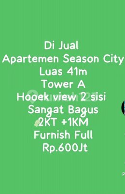For Sale Season City Apartment Area 41m Tower A Corner view 2 sides Excellent Condition 2BR + 1 Maid's Room Fully Furnished IDR 600M Negotiable Velni vz 08778087xxxx