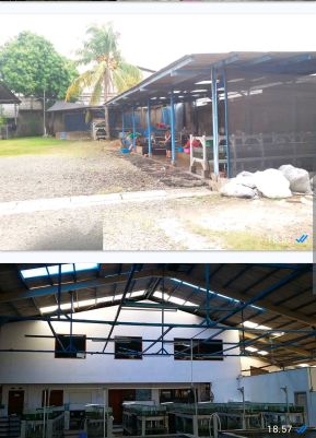 Land Plot + Warehouse for Sale in Kalideres: Building/warehouse area 36 x 25 m = 900m². Office building area 14.5 x 5 m. Land area 4000+ m² (as measured). 5 SHM certificates. Facing East. All certificates are in hand. Price 5.5 million/m² negotiable. Only land area calculated (warehouse free).