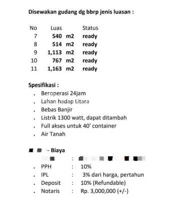 For Rent Warehouse Semanan Near Hipli Market Kalideres West Jakarta Price 700k /m²/year negotiable