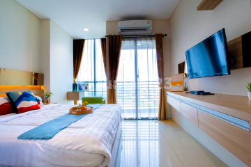 Condition: Fully furnished with electronic appliances (AC, microwave, water heater, dispenser, refrigerator) Facility: 24-hour security Basement parking Infinity-style swimming pool Fitness center Private access card to the apartment unit, and much more Additional Info: Easy and close access to locations in Sudirman, Senayan, Slipi, Palmerah Easy access to Busway and Train Station (Commuter Line) Close to Toll Gate (to Soekarno-Hatta Airport, to Semanggi, and near toll access to Tangerang) Near Hospitals (Harapan Kita Hospital, Pelni Hospital, Dharmais) Near Malls (Senayan City, Central Park, Taman Anggrek, Plaza Semanggi, Grand Indonesia) Near GBK, JCC, WTC Kuningan Near Bina Nusantara University (BINUS) and certain Junior High and High Schools Rental Price: - Rp6.5 million/month (monthly payment) - Rp6 million/month (minimum 6-month lease, monthly payment) - Rp6 million/month (minimum 3-month lease, full payment) = 18 million - 1-year lease, full payment 70 million - Rp449 thousand/night Note: - Price does not include 1-month full rent deposit, electricity, water, internet, and parking fees - Price includes IPL/service charge