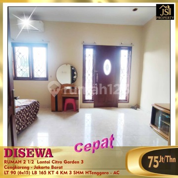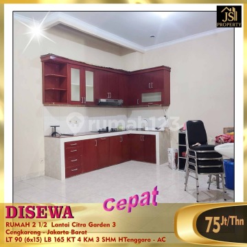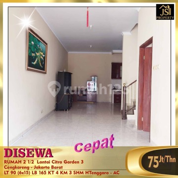 FOR RENT: 2 1/2-Story House in Citra Garden 3 Cengkareng - West Jakarta Semi-Furnished, 3 AC Units Satellite TV, Beds Land Area: 90 m² Building Area: 165 m² Size: 6 x 15 Floors: 2 1/2 Bedrooms: 4 Bathrooms: 3 Storage on 3rd Floor Electricity: 2,200 watts WTP Citra Water Supply Southeast Facing SHM Certificate Price: 75 Million/year (Negotiable)