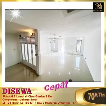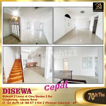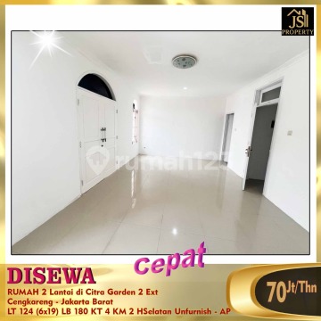 Wide Road, 15 minutes to Soetta Airport Carport for 2 cars Land Area 124 m² Dimensions 6m x 19m Building Area 180 m² 2 Floors 3 Bedrooms 1 Maid's Room 2 Bathrooms 1 Storage Room Unfurnished Electricity 2200 Watt SHM Certificate (Freehold Title) South Facing PAM Water (Municipal Water) Price 70M/year Negotiable - AP