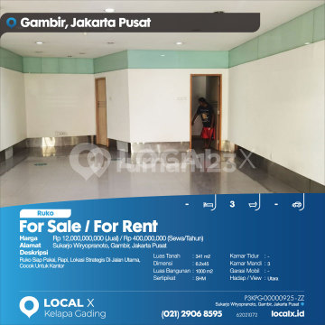 Ready-to-Use Shophouse, Neat, Strategic Location on Main Road, Suitable for Office For Sale / For Rent Sukarjo Wiryopranoto Shophouse, Gambir, Central Jakarta Price: Rp 1,200,000,xxx (Sale) / Rp 40,000,xxx (Rent/Year) Property Description: Ready-to-Use Shophouse, Neat, Strategic Location on Main Road, Suitable for Office Land Area: 341 m² Dimensions: 6.2 x 45 m Building Area: 1000 m² Certificate: SHM (Freehold Title) Bedrooms: - Bathrooms: 3 Car Garage: - Orientation / View: North LOCAL X Kelapa Gading ******** 021 2906 8xxx P3KPG-0000xxxx-ZZ-J/S