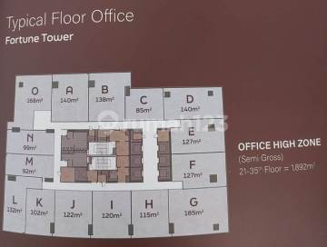 Land Area: 224 m2 (122 + 102) Building Area: 224 m2 Floor: 26 Tower: Fortune Ownership Status: - Orientation: North Electricity: - watts Position: Hook Bathroom: 1 Unfurnished Carport: Basement Price: Rp 403.2 million/year (150k/month excluding VAT) Office drop-off & exclusive lobby, Elevator, AC system (VRV), 24-hour security + CCTV, Fire safety system, Toilet & pantry, K-Mall (integrated retail), Rooftop garden, Bank & ATM center, Restaurant & café, Near toll access