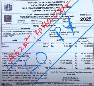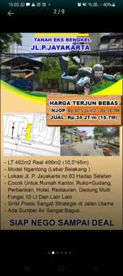 Sold below NJOP PLOTTED LAND on the side of a main road in CENTRAL JAKARTA, SUITABLE FOR SHOPHOUSES, can BUILD a 10-STOREY BUILDING Land Area 462m² (10.5 x 46) (Actual approx. 499m² (approx. width * 46m)) Pocket-shaped model (larger area at the back) SHM Certificate, Facing South, Suitable for Office House, Shophouse, Banking Building, Hotel, Multi-Function Building (e.g., 1st Floor Showroom, 2nd Floor Banking, 3rd & 4th Floors Offices, 5th Floor up Transit Warehouse & Residence). *Sold below NJOP Rp. 34 million/m²* NJOP Price Rp. 40.5 million/m² Contact *Lindawati* 081388-602-xxx Atlantis Realty