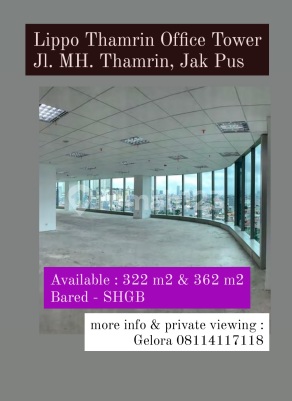*For Sale - For Rent* *Office Space Lippo Thamrin Central Jakarta* Available 3 Units: Area: 322 m² (semi gross) Area: 362 m² (semi gross) Area: 684 m² (semi gross) PPJB ready for AJB *Sale: 55 million/m²* *Rent: 275 thousand/m²/month* More Information: *Gelora Sukarno* *ERA Prestige* *08114117xxx*