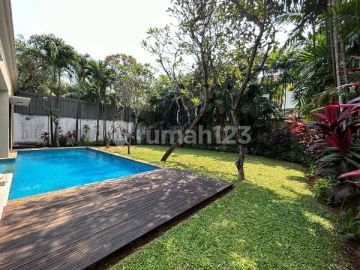 For rent / disewa the beautiful house in the compound of 4 houses is designed like Villa. with 24-hour security guards. Detail as below: The land size is 650 sqm The building size is 450 sqm 2 story house 5 bedrooms 4 baths + 1 powder room It's the beautiful living room, dining area, lobby, There is a beautiful Kitchen set complete with modern appliances like a stove, oven, fridge, water dispenser, and microwave, and the kitchen is bright facing through to S.pool Also, it's a nice spacious terrace that is facing the green garden and a lovely private pool, and 1 study room + bath on the 1st floor. On the 2nd floor, there are 4 bedrooms + 3 baths., spacious Balcony that is facing down to the garden and s.pool too. The location is in Cipete cross to Kemang, south of Jakarta It's only walking distance to SOS Hospital Antasari road 5 minutes to Lippo Mall Kemang Vilage 5 mins to France International School 15 mins to JIS 10 mins to Ausi International School 10 - 15 mins to SCBD area The price is $4,200 / month