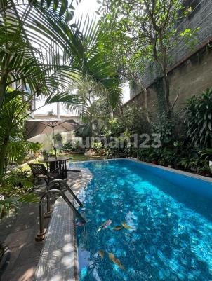 For sale: Cipete South Jakarta house Land area 680 Building area 500 2 floors 6+2 bedrooms 3+1 bathrooms 2 storage rooms Clean kitchen + dirty kitchen Private pool 5x8 Koi fish pond Front & back garden Garage/carport 2+3 West-facing *Facilities:* - 13,000W electricity - Jetpump water - Marble & granite flooring - Teak wood window frames Freehold title Price 22.5 B, Negotiable 88023, 88027
