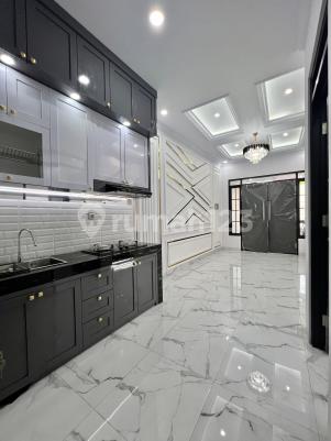 For sale: New luxurious 3-story house in a one-gate community, dual car access, close to Andara Toll Village, near Cilandak, near Ragunan Bushway Terminal. Safe, comfortable location, flood-free.