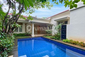 For Rent Classic Tropical Vibes House Cilandak Area - South Jakarta Specifications: Land area: 725 m² Building area: 350 m² Building: 1 floor Position: Hook Orientation: West Bedrooms: 5 Bathrooms: 3 Maid's bedrooms: 2 Maid's bathrooms: 1 Storage room Security post: 1 Dirty kitchen: 1 Electricity: 23,000 watts Telephone line Air conditioning Water heater Washing machine and dryer Refrigerator Oven and stove Swimming pool *For residential use only!!* Garage: 2 cars Carport: 2 cars Rental price *Rp 550,000,000 per year (exclude tax)* Contact Handy 08215800xxxx