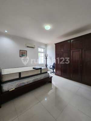 For rent: Beautiful and well-maintained house with a highly strategic location in the Pondok Indah area. Specifications Land area: 210 m2 Building area: 300 m2 4 bedrooms + 1 additional 3 bathrooms + 1 additional West-facing Electricity: 5700 watt 2 floors 1 carport, 1 garage Road width for 2 cars Flood-free Strategic location, only 5 minutes to Pondok Indah Price: 230 million/year (negotiable)