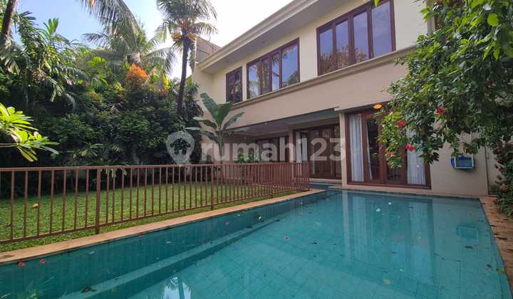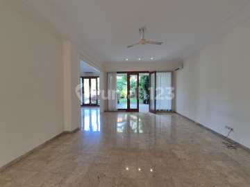 For rent: a serene house within a compound in Kemang. Land/building area: 650m²/570m² 4 bedrooms + 1 study room 4 bathrooms Living room + dining room Mezzanine room 2 maid bedrooms + 1 maid bathroom 2 storeys 24-hour security office.