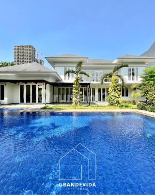 KEMANG - [FOR SALE]: 2-STORY LUXURY HOUSE, MOVE-IN READY, SEMI-FURNISHED ——————————— HOUSE CONDITION: • Single House • Yard: Front, Back • Building Condition: Well-maintained • SEMI-FURNISHED ——————————— HOUSE FACILITIES: • Swimming Pool • Gazebo • Private Security Post • Internet and TV Cable Ready • Foyer • Back Terrace • CCTV • Multipurpose Room • Entertainment Room • Family Room • Big Kitchen • Study Room / Library • Dirty Kitchen / Back Kitchen • Wet Kitchen • Solahart Water Heater ——————————— UNIT SPECIFICATIONS: Land Area: 1,870 m² Building Area: 1,000 m² Bedrooms: 5 + 1 | Bathrooms: 5 + 1 Maids' Rooms: 3 | Maids' Bathrooms: 2 Floors: 2 Electricity: 23,000 Watt Garage: 3 Carport: 10 Facing: South CERTIFICATE: SHM (Freehold Title) PRICE: Rp 60 Billion