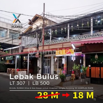 17 PRICE DROP!! FOR SALE HOUSE (Shop & Boarding House for Long-Term Investment) in PUPR Complex, Lebak Bulus, Kebayoran Lama, South Jakarta SHM | IMB Land Area: 307 m2 Building Area: ± 500 m2 Shops/Kiosks: 4 House Bedrooms: 3 House Bathrooms: Boarding Rooms: 18 (Furnished) External Toilet: 1 Floors: 2 Orientation: East Road: Wide enough for 2 cars Parking: 1 Carport: House Electricity: 3500 watts Boarding House Electricity (Token): 900 watts per room, total 16,200 watts Shop Electricity: 5,200 watts Swimming Pool WiFi AC PRICE FROM 28 BILLION TO 18 BILLION NEGOTIABLE Boarding rooms are 100% fully occupied (Rent per room 1 Million - 1.8 Million/Month) Monthly rental income: 30 Million Shops Fully Occupied (around 20 Million/year) 3 shops, 1 used by owner's business Highly Strategic Location Close to MRT Lebak Bulus Grab (a step away) & Lebak Bulus Busway Stop | Access to Jak Lingko Minibuses Near Simatupang Toll Exit Opposite Poins Square Apartment & Diamond Supermarket (via skywalk) from MRT Lebak Bulus. Former Carrefour Lebak Bulus, planned to become PIM 4 & Apartment Near Airport Toll & direction to Bogor 10 Minutes to PIM (Pondok Indah Mall) 1, 2 & 3. Near Pondok Indah Toll Gate Close to Bhakti Mulya 400 School, near Sekopol Hospital, Pondok Indah, Siloam Hospitals