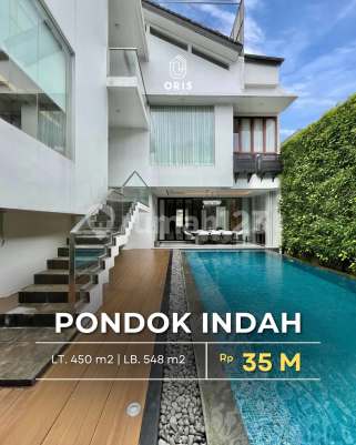 [ FOR SALE PONDOK INDAH ] MODERN LUXURY HOUSE FULLY FURNISHED DETAILED SPECIFICATIONS: Land Area 450 m2 Building Area 548 m2 3.5-story building 4 Bedrooms 4 Bathrooms 3 Maid's Bedrooms 1 Maid's Bathroom Swimming Pool Central AC Prayer Room Balcony Front Yard & Back Terrace Electricity 10,000 watts Garage for 2 cars Carport for 2 cars SHM (Freehold Certificate) # Price Rp 35 Billion Negotiable More Info & Visit Tora 08572500xxxxrumahdijualpondokindah #om