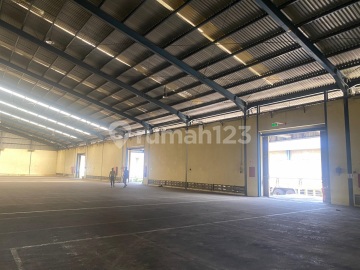 There is a loading dock, flood-prone area, neat warehouse, 24-hour security.
