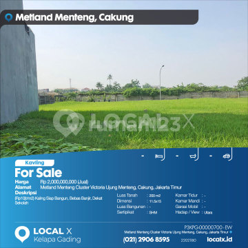 (Rp10 million/m2) Ready-to-Build Plot, Flood-Free, Close to School For Sale Land Plot Metland Menteng Cluster Victoria Ujung Menteng, Cakung, East Jakarta Price: Rp 2,000,000,000 (For Sale) Property Description: (Rp10 million/m2) Ready-to-Build Plot, Flood-Free, Close to School Land Area: 200 m2 Dimensions: 11.5x15 Building Area: 200 m2 Certificate: SHM (Freehold Certificate) Bedrooms: - Bathrooms: - Car Garage: - Orientation/View: North LOCAL X Kelapa Gading ******** 021 2906 8xxx P3KPG-0000xxxx-EW-J