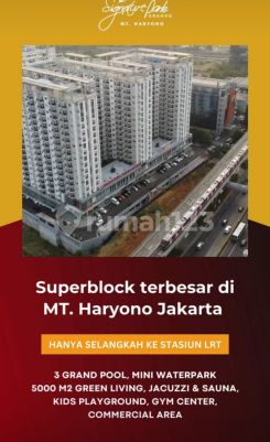 SIGNATURE PARK GRANDE MENJADI HUNIAN IDEAL DI PUSAT BISNIS JAKARTA KAWASAN HUNIAN TERBESAR DI AREA MT. HARYONO Di luas lahan seluas 5.5 hektar, hadir dengan konsep one stop living yang dikelilingi dengan 60% penghijauan dapat meningkatkan kualitas hidup Anda beserta keluarga. SIAP HUNI & SIAP DISEWAKAN Unit Apartemen Signature Park Grande sudah siap untuk dihuni oleh Anda maupun bersama keluarga Anda. Nikmati income tambahan dengan menyewakan unit Anda melalui Team Rental Management Kami. HUNIAN NUANSA RESORT Memiliki lebih dari 20 fasilitas, rasakan nuansa liburan bak tempat rekreasi dan relaksasi di Apartemen Signature Park Grande ini. SMART ORIENTED LIVING Rasakan kemudahan bermobilisasi karena lokasi Apartemen Signature Park Grande yang strategis dan dekat dengan stasiun LRT, Stasiun kereta, dan Busway. HGB MURNI Legalitas yang lebih aman dan terjamin sehinnga dapat di wariskan ke anak -cucu Anda. Setiap kepemilikan Apartemen Signature Park Grande sudah dilengkapi dengan sertifikat Hak Guna Bangunan murni. Note : Unit kosongan cara bayar : Cash keras Hubungi Segera : Nany 0813xxxxxxxx