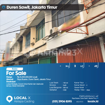 Strategic Location, Suitable for Offices and Other Businesses, Near a Minimarket For Sale Ruko Raya Buaran, Duren Sawit, East Jakarta Price: Rp 640,000,000 (For Sale) Property Description: Strategic Location, Suitable for Offices and Other Businesses, Near a Minimarket Land Area: 150 m2 Dimensions: 5x30 Building Area: 300 m2 Certificate: HGB (Right to Build) Bedrooms: - Bathrooms: 2 Car Garage: - Orientation / View: North LOCAL X Kelapa Gading ******** 021 2906 8xxx Whatsapp/Call Mariana - 0816 4830 5xxx P3KPG-0000xxxx-MT-J