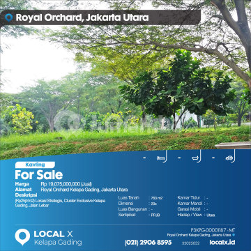(Rp25 million/m2) Strategic Location, Exclusive Cluster Kelapa Gading, Wide Road For Sale Royal Orchard Land Plot, Kelapa Gading, North Jakarta Price: Rp 19,075,000,000 (For Sale) Property Description: (Rp25 million/m2) Strategic Location, Exclusive Cluster Kelapa Gading, Wide Road Land Area: 763 m2 Dimensions: 20x Building Area: 763 m2 Certificate: PPJB Bedrooms: - Bathrooms: - Car Garage: - Facing/View: North LOCAL X Kelapa Gading ******** 021 2906 8xxx Whatsapp/Call. Mariana - 0816 4830 xxx P3KPG-0000xxxx-MT-J