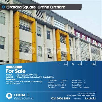 Ready to Use, Elevator Available, Fully Furnished, Strategic Location, Suitable for Office For Sale Orchard Square Shop House, Kelapa Gading, North Jakarta Price: Rp 1,600,000,000 (For Sale) Property Description: Ready to Use, Elevator Available, Fully Furnished, Strategic Location, Suitable for Office Land Area: 136 m² Dimensions: 8x17 Building Area: 400 m² Certificate: HGB (Right to Build) Bedrooms: - Bathrooms: 5 Car Garage: - Orientation/View: South LOCAL X Kelapa Gading ******** 021 2906 8xxx WhatsApp/Call: Mariana - 0816 4830 xxx P3KPG-0000xxxx-MT-J