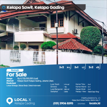 Strategic Location, Flood-Free, Near Indomaret For Sale Palm Oil House, Kelapa Gading, North Jakarta Price: IDR 670,000,000 (For Sale) Property Description: Strategic Location, Flood-Free, Near Indomaret Land Area: 414 m2 Dimensions: 18x Building Area: 600 m2 Certificate: SHM (Freehold Certificate) Bedrooms: 5+2 Bathrooms: 5+1 Car Garage: 2+2 Orientation/View: Southwest-Southeast LOCAL X Kelapa Gading ******** 021 2906 8xxx P3KPG-0000xxxx-CI-J