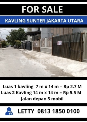 Sunter Agung - Strategic Residential Land in North Jakarta Welcome to an exceptional opportunity to own a 98 m2 residential plot in the Sunter Agung area of North Jakarta. At an attractive price of Rp 2.65 billion, this property offers great potential for building your dream home or a profitable investment. Its strategic location provides easy access to various public facilities and business centers, making it an ideal choice for families and investors alike. PAULA 08212199xxxx Property Description This land is situated in a rapidly developing neighborhood, offering you easy access to daily necessities. Surrounded by a comfortable and safe area, this property is perfect for building a cozy residence. The property certificate is already available (SHM/Certificate of Ownership), providing legal certainty for the buyer. Property Specifications Price: Rp 2.65 billion (Negotiable) | Certificate: SHM Plot Size = 7 m x 14 m Price: Rp 2.65 billion Plot Size = 14 m x 14 m Price: Rp 5.3 billion There are 2 plots available; can be purchased individually Advantages This property boasts a highly strategic geographical advantage, being close to various public facilities such as schools, shopping centers, and business districts. Excellent transportation access makes this area highly sought-after. With high development potential, your investment here can yield optimal returns in the future.