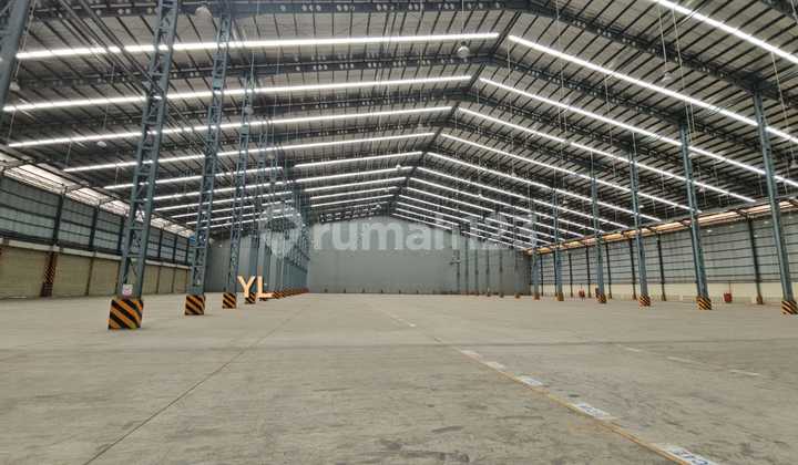 Warehouse for Rent, ready to use in Cakung Cilincing, North Jakarta. Land Area: 18,000 m2 Warehouse Area: 10,560 m² (96x110m) Center Ceiling Height: 19m Side Ceiling Height: 15m Electricity: 240 KVA Floor Strength: K400 14 loading dock doors Minimum lease: 1 year Shared toilets: 5 Rental Price: IDR 95,000/m2/month