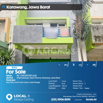 Ready to Use, Suitable for Business, Strategic Location For Sale Dharmawangs Shop House, Grand Taruma, Karawang, West Java Price: Rp 150,000,000 (For Sale) Property Description: Ready to Use, Suitable for Business, Strategic Location Land Area: 75 m2 Dimensions: 5x15 Building Area: 150 m2 Certificate: SHM (Freehold Title) Bedrooms: - Bathrooms: 2 Car Garage: - Orientation/View: South LOCAL X Kelapa Gading ******** 021 2906 8xxx P3KPG-0000xxxx-WH-J