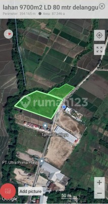 Luas tanah 2.530 m2 Lebar depan 57 m Hadap utara Status pekarangan. Zona merah. Akses kontainer. 8 menit ke Jl Solo Jogja.