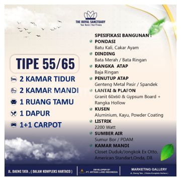 CHEERFUL MONDAY PROMO - THE ROYAL SANCTUARY Modern 2-Story Residence - Strategic Location in Makassar ‼️ DON'T WAIT FOR PRICES TO RISE ‼️ LIMITED opportunity to own an exclusive home starting from 695 MILLION during Soft Opening! THIS IS NO ORDINARY PROMO! Only during Soft Launching can you get: :fire: FREE FEES :fire: FREE FURNITURE & ELECTRONICS BONUS (Sofa Set, AC, TV, Refrigerator, CCTV, etc.) AREA ADVANTAGES: ✅ One Gate System ✅ 24-Hour Security ✅ CCTV in every corner ✅ Ze Garden - green & comfortable environment Marketing Gallery: Jl. Daeng Tata 3, Makassar City ⏳ LIMITED UNITS - FIRST COME, FIRST SERVED! Prices & bonuses are LIMITED and may end WITHOUT NOTICE. Let's "BOOKING" NOW Secure your best unit today before it's SOLD OUT