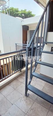 House For Sale in Malang: Semi-furnished house for sale: - 3 air conditioning units - 2 water heaters - kitchen set Very well-maintained and ready to occupy. 2.5 floors. Built in 2010. Carport fits 2 cars. Garage fits 1 car. PDAM and well water. Road width for 3 cars passing. Negotiable price.