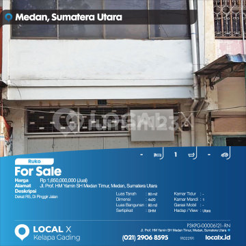 Near Hospital, On the Roadside For Sale Ruko Prof. HM Yamin SH Medan Timur, Medan, North Sumatra Price: Rp 165,000,000 (For Sale) Property Description: Near Hospital, On the Roadside Land Area: 80 m² Dimensions: 4x20 Building Area: 80 m² Certificate: SHM Bedrooms: - Bathrooms: 1 Car Garage: - Orientation/View: North LOCAL X Kelapa Gading ******** 021 2906 8xxx P3KPG-0000xxxx-RN-J